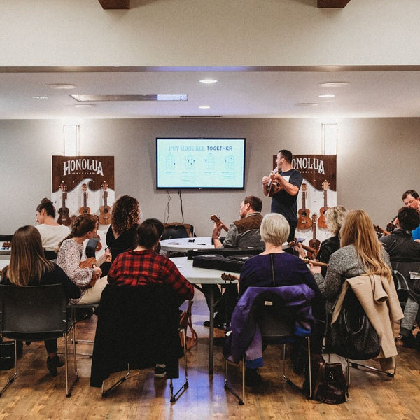 Uke Night is the educational arm of Calgary-based ukulele company Honolua Ukuleles, and we have an essential goal in mind: fostering community by encouraging and enabling more people to play music! So, Honolua created Uke Night to gather people to learn an instrument together in a fun, easy, and accessible way.